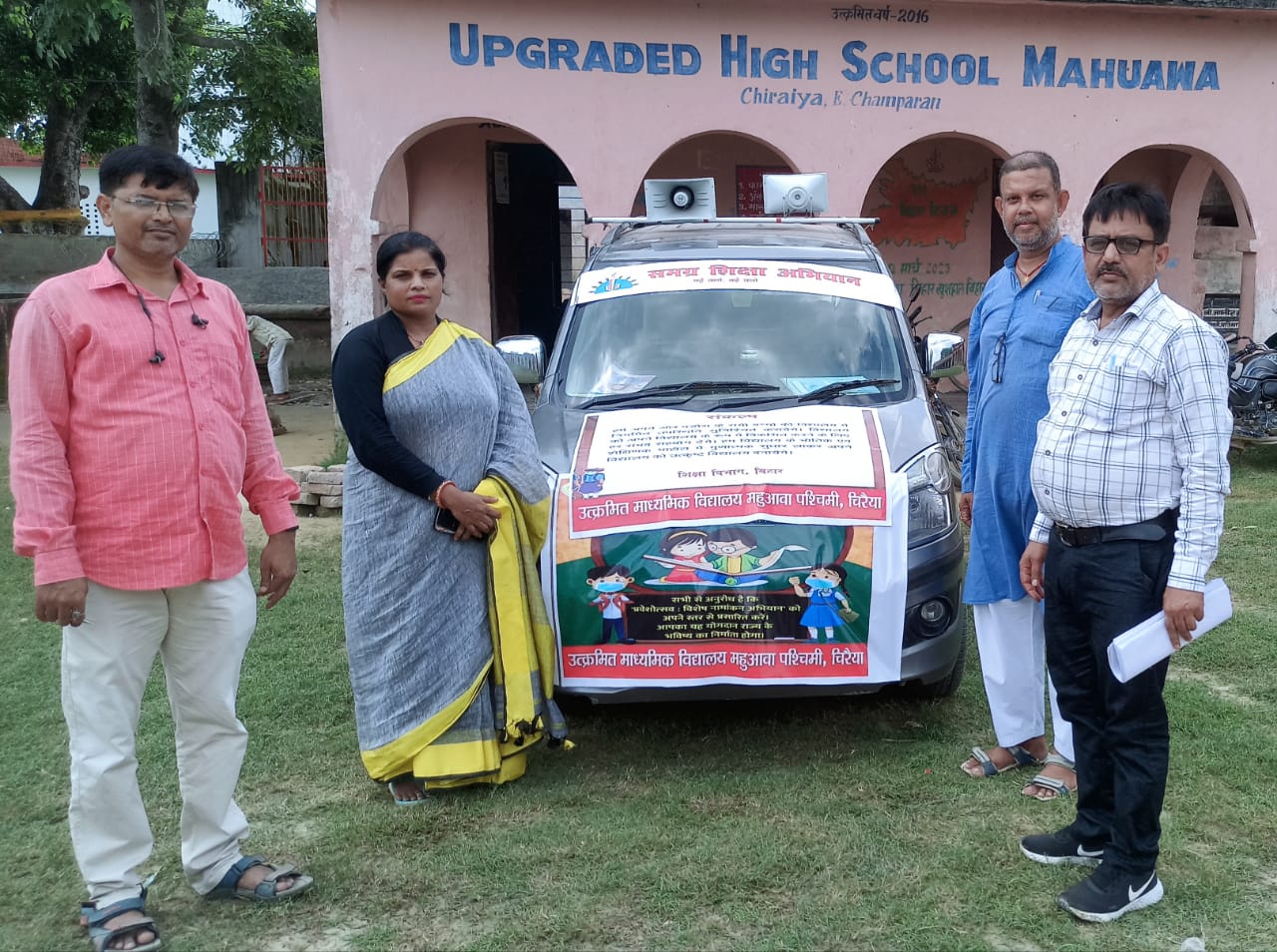 मोतिहारी:–चिरैया प्रखंड क्षेत्र अंतर्गत राजकीय उत्क्रमित माध्यमिक विद्यालय महुआवा पश्चिमी में गुरुवार को समग्र शिक्षा अभियान के तहत ‘चलो चले स्कूल चले’ अभियान की शुरुआत की गई। जिसे विद्यालय की प्रभारी प्रधानाध्यापिका प्रीति कुमारी, मुखिया निसार अहमद, पूर्व सरपंच राम इकबाल पासवान, पूर्व पंचायत समिति सदस्य एवं जेडीयू के जिला कोषाध्यक्ष दिवाकर पांडे, सामाजिक कार्यकर्ता संजय पांडे, दिलीप ठाकुर, शिक्षा प्रेमी अनिल पांडे आदि ने संयुक्त रूप से हरी झंडी दिखाकर अभियान रथ को रवाना किया गया। विद्यालय की प्रधानाध्यापिका प्रीति कुमारी ने बताया कि उक्त अभियान रथ का उद्देश्य पोषक क्षेत्र के बच्चों को स्कूल लाना है।शिक्षा विभाग के निर्देशानुसार जो बच्चे नामांकित हैं और विद्यालय नहीं आ रहे हैं, उनको स्कूल लाना है। साथ ही जो अनामांकित बच्चे हैं वह विद्यालय में आकर नामांकन करवाए। रथ से पोषक क्षेत्र के अभिभावक को भी जागरूक करने का प्रयास है। मुखिया निसार अहमद ने पत्रकारों से बात करते हुए कहा कि इस तरह का रथ निकालना प्रधानाध्यापिका प्रीति कुमारी द्वारा अभिभावकों को जागरूक करने की अनूठी पहल है। उन्होंने बताया कि विद्यालय के विकास के लिए हमलोग कृत संकल्पित है। मेरे पंचायती योजना से विद्यालय की चारदीवारी का निर्माण प्रारंभ कराया जा चुका है, आगे जो भी विद्यालय विकास के लिए आवश्यक होगा हम अपना पूरा योगदान करने का प्रयास करेंगे। वहीं पूर्व सरपंच दिवाकर पांडे ने विद्यालय के विकास को बेहतर बनाने के लिए संकल्प दोहराया। रथ रवाना करने के उपरांत समाज के गणमान्य लोगों के द्वारा विद्यालय को अपने-अपने स्तर से कर जरूरी सामग्री दी गई। मुखिया निसार अहमद द्वारा प्रधानमंत्री पोषण योजना में बच्चों को भोजन के लिए 65 थाली दी गई। वही दिवाकर पांडे के द्वारा बच्चों को बैठकर खाने के लिए दरी, राम इकबाल पासवान द्वारा बच्चों को खेलने के लिए कैरम बोर्ड, संजय पांडे ने फुटबॉल, दिलीप ठाकुर ने वॉलीबॉल, शिक्षा प्रेमी अनिल कुमार पांडे द्वारा दस पीस स्पीकिंग रोप,लूडो, चेस, फ्लाइंग रिंग आदि विद्यालय को। दान किया गया। विद्यालय की एचएम प्रीति कुमारी ने सभी दाताओं का आभार प्रकट किया एवं सभी से आग्रह किया कि आप सभी ग्रामीण जनप्रतिनिधि को विद्यालय में अपना योगदान देते रहना चाहिए। उन्होंने कहा कि विद्यालय समाज का है और आपका है। इसलिए आपका प्रत्यक्ष व अप्रत्यक्ष रूप से हमें सहयोग मिलता रहे। धन्यवाद ज्ञापन सहायक शिक्षक पिंकू कुमार ने किया। मौके पर विद्यालय की वरीय शिक्षिका रश्मि कुमारी, सहायक शिक्षक अभिषेक कुमार पांडे, विकास कुमार पांडे, सत्येंद्र कुमार, रीता कुमारी, प्रतिमा देवी, बबिता कुमारी सहित रसोईया तथा स