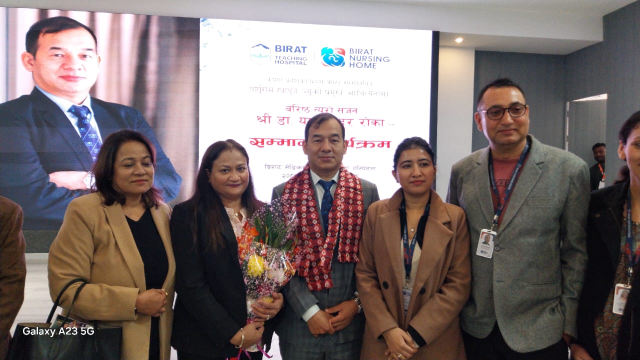 विराटनगर में 15 वर्षों से न्यूरो सर्जन के रूप में कार्यरत डॉक्टर यम बहादुर रोका को विशेष सम्मान सहित विदाई दी गई। न्यूरो और मस्तिष्क से संबंधित जटिल सर्जरी में सफल माने जाने वाले डॉक्टर रोका को विराट मेडिकल कॉलेज एंड टीचिंग अस्पताल ने बुधवार को विशेष सम्मान दिया।